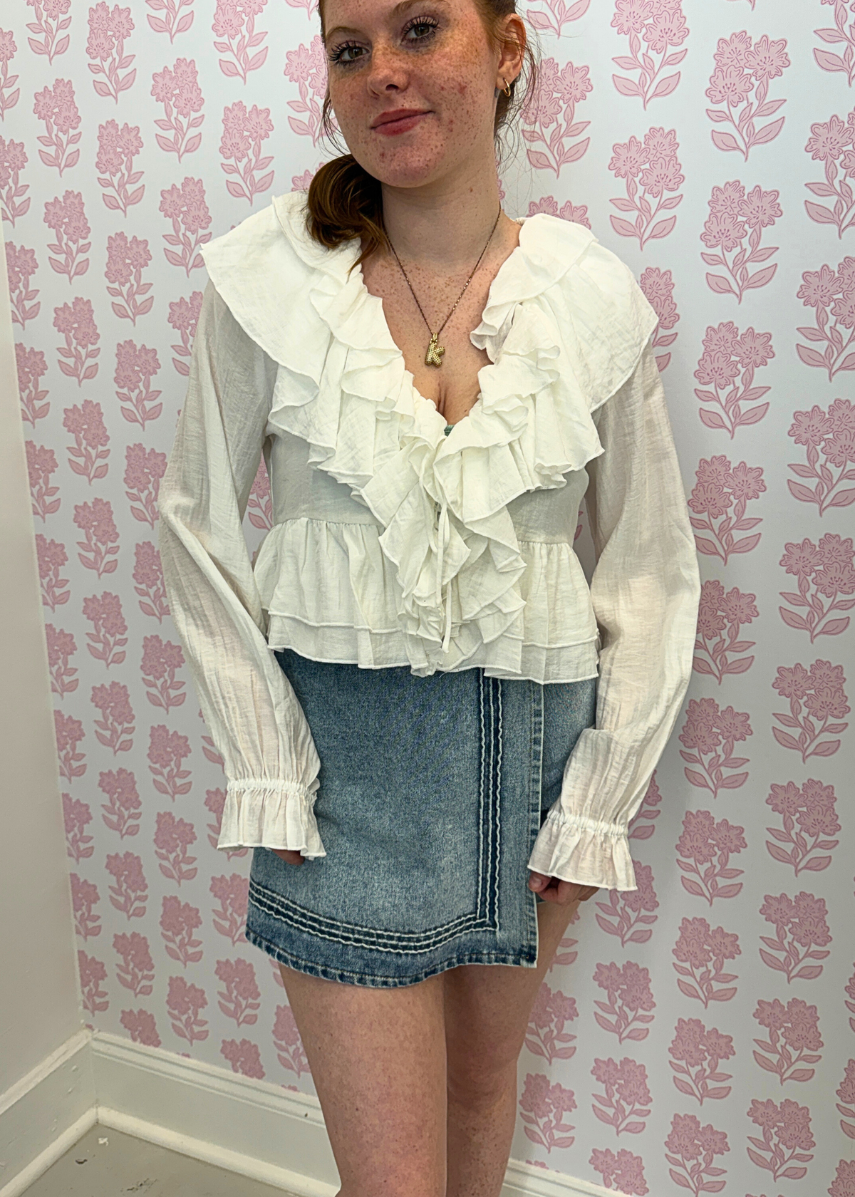 Maggie High Waisted Denim Mini Skort - Light Wash