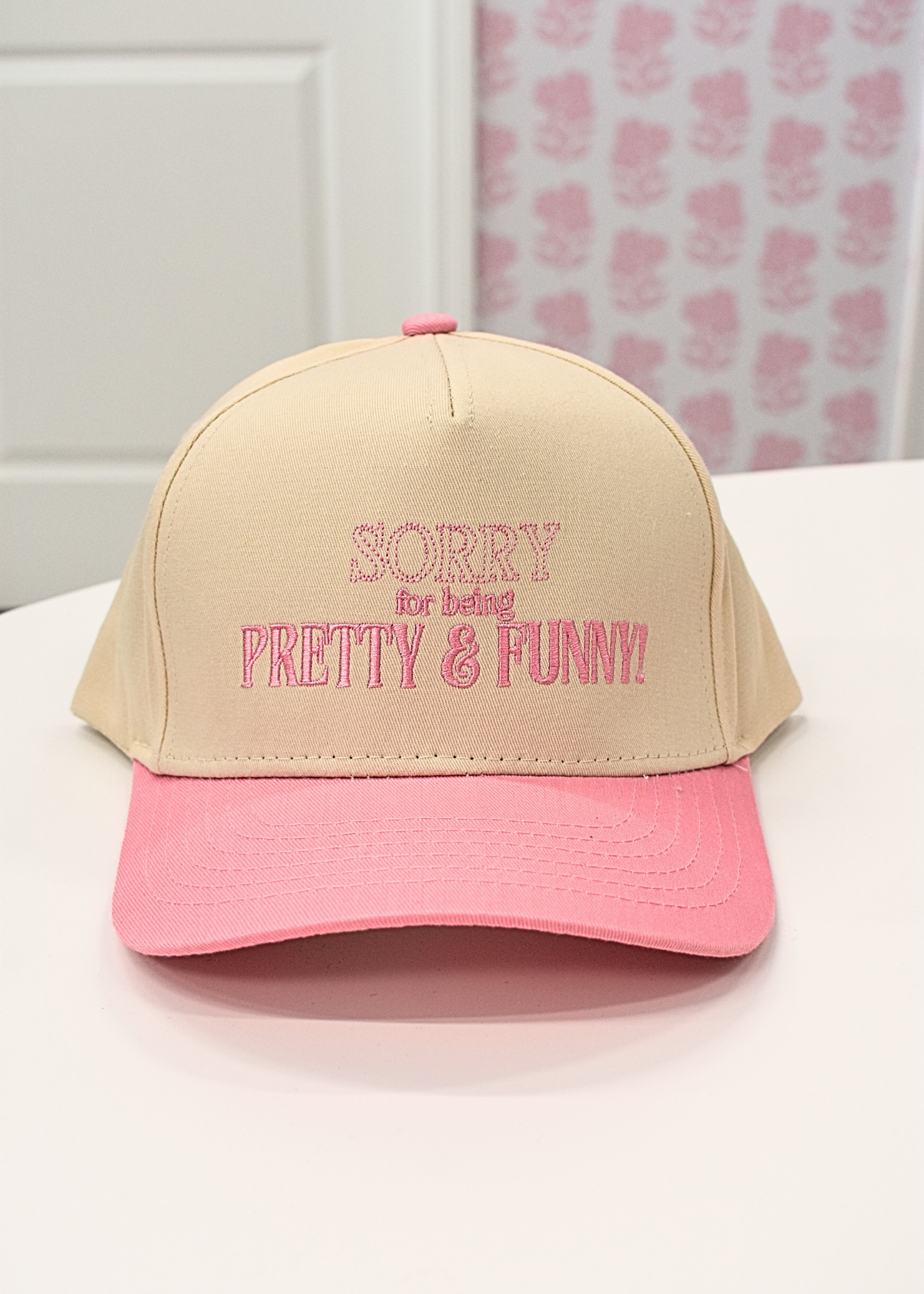 Pretty & Funny Structured Baseball Hat - Pink/Natural