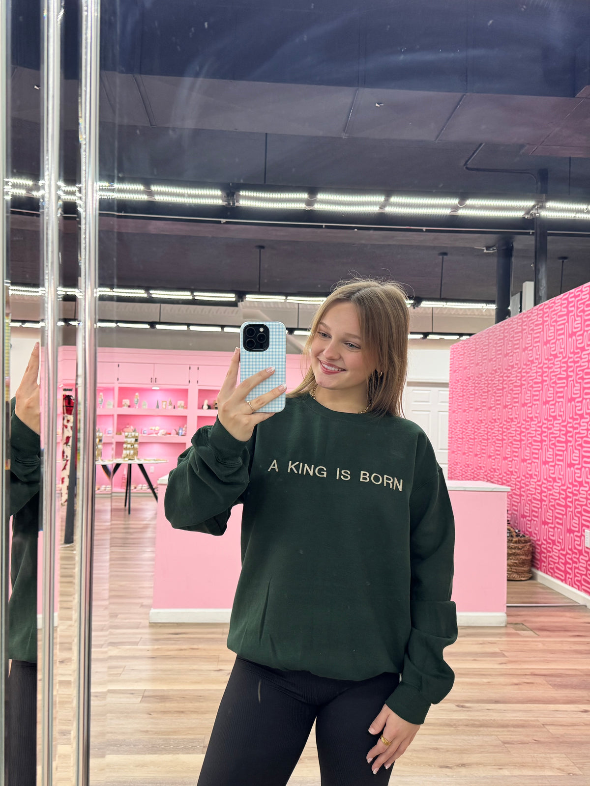 A King is Born Sweatshirt - Hunter Green with Gleaming Gold Embroidery